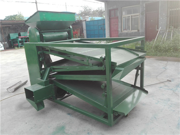 原枝花椒投進料斗后--------粉碎裝置將原枝花椒進行粉碎,將枝葉殼籽分別剝離下來--------通過下料器一起落到篩面上進行分離篩分---------一層將篩出來的是大枝干、梅花椒、石子,復試篩網篩出來的是花椒枝--------二層篩出來的是花椒籽,椒籽出來的地方有風機,將里面輕的雜質篩選出來-------三層是為篩分椒枝設計,整層篩出來都是花椒枝------底層篩出來的是花椒殼,復試篩網是塵土雜質等。